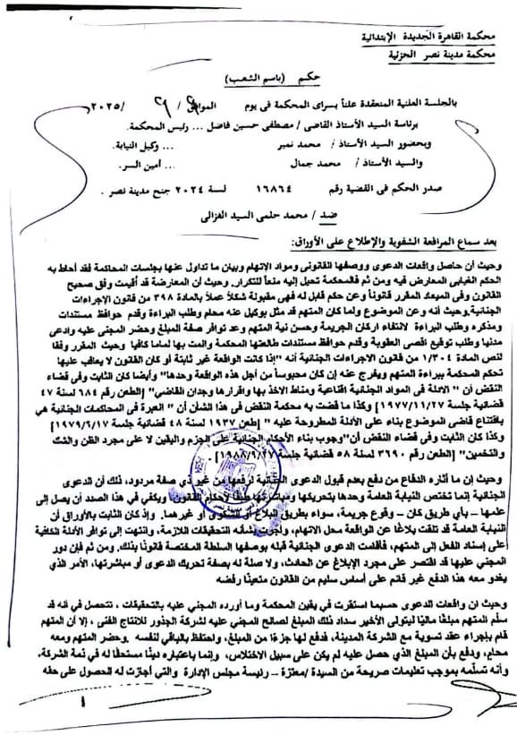 وذكر حلمي ان هذه الادعاءات كذبها رئيس شركة روتانا دبي فور استدعائه للشهادة أمام المستشار المصري مصطفى حسين فاضل رئيس المحكمة الجنائية في الجناية رقم/16864 لسنة 2024 جنح أول مدينة نصر، وهي ذات المحكمة التي سبق وحكمت على «حلمى» بالحبس ثلاث سنوات تلفيق والتي اكتشفت ان جميع التهم بالقضية ملفقة وقضت ببراءة حلمى ورفضت الدعوى المدنية المقامة من مفوضة الامير الوليد بن طلال.