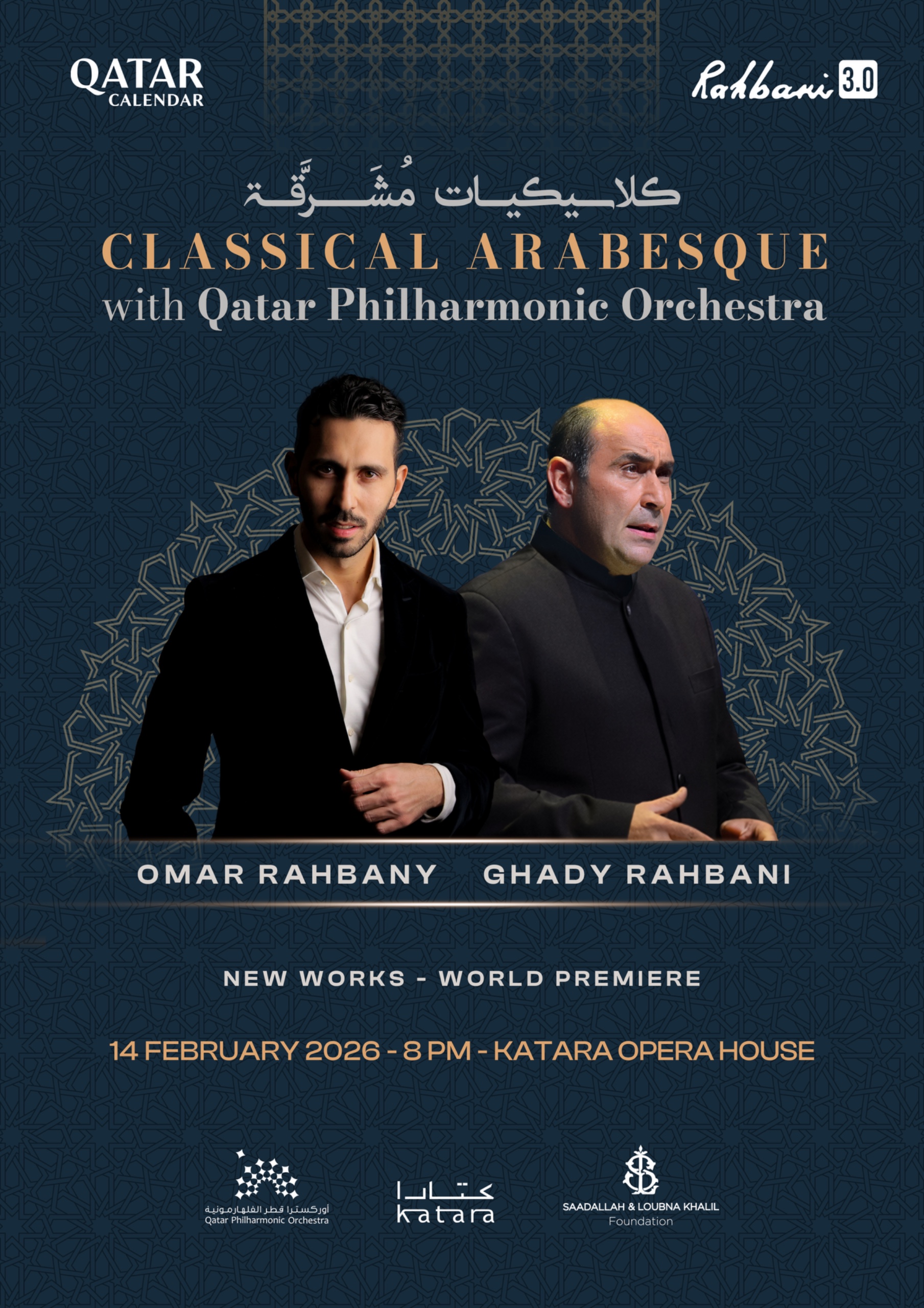 شهدت دار الأوبرا في الدوحة، قطر حفلاً موسيقيًا راقيًا تحت عنوان “*كلاسيكيات مشرقة*”، برعاية *Qatar Calendar* وإنتاج *Rahbani 3.0*، حيث التقت الموسيقى الكلاسيكية الغربية بغنى الموروث العربي في تجربة فنية آسرة. وقد أحيا الأمسية المؤلفان الموسيقيان *غدي الرحباني* و *عمر الرحباني* بمشاركة *أوركسترا قطر الفلهارمونية* بقيادة المايسترو الإسباني *بابلو مييلغو*.