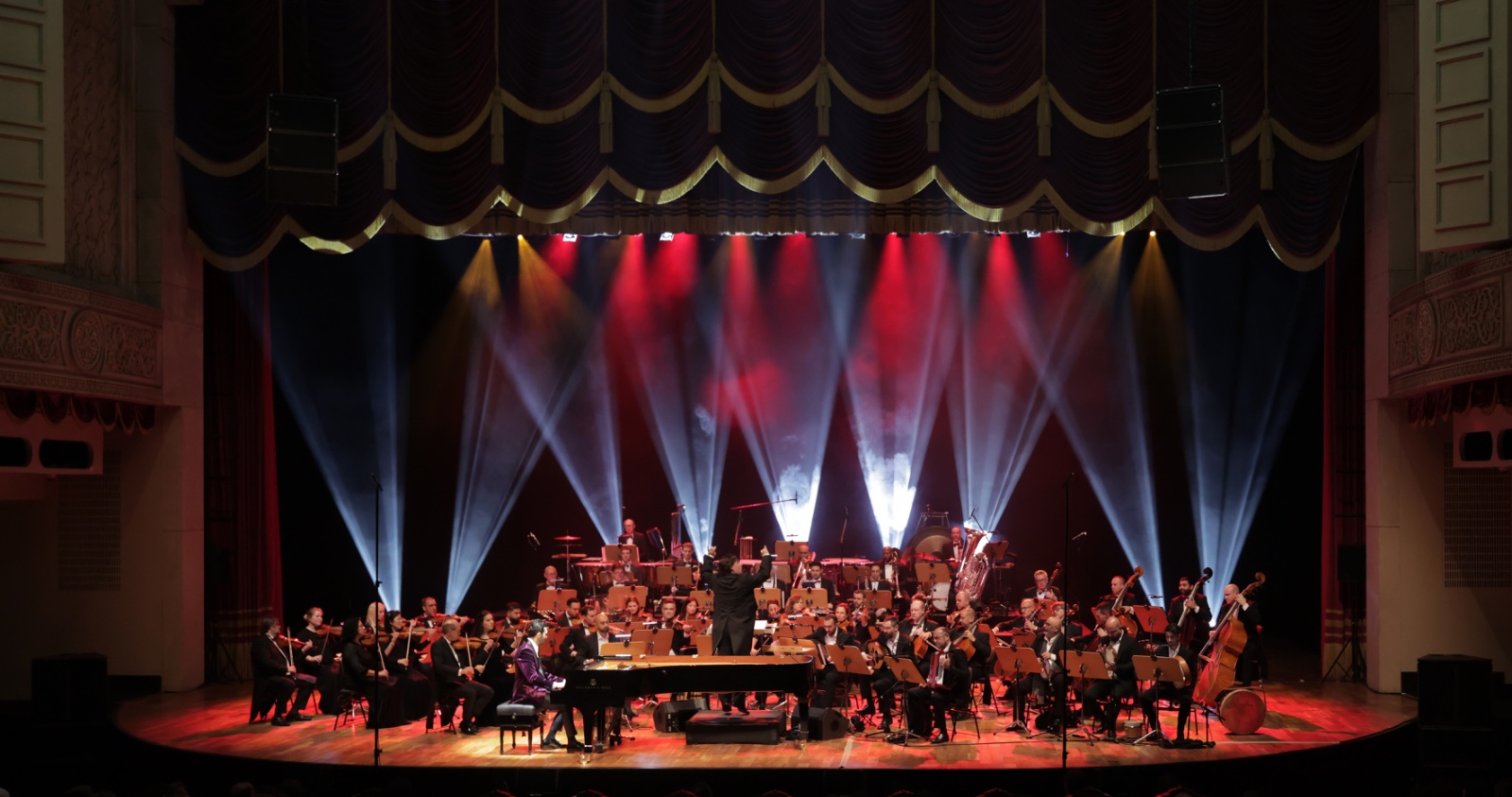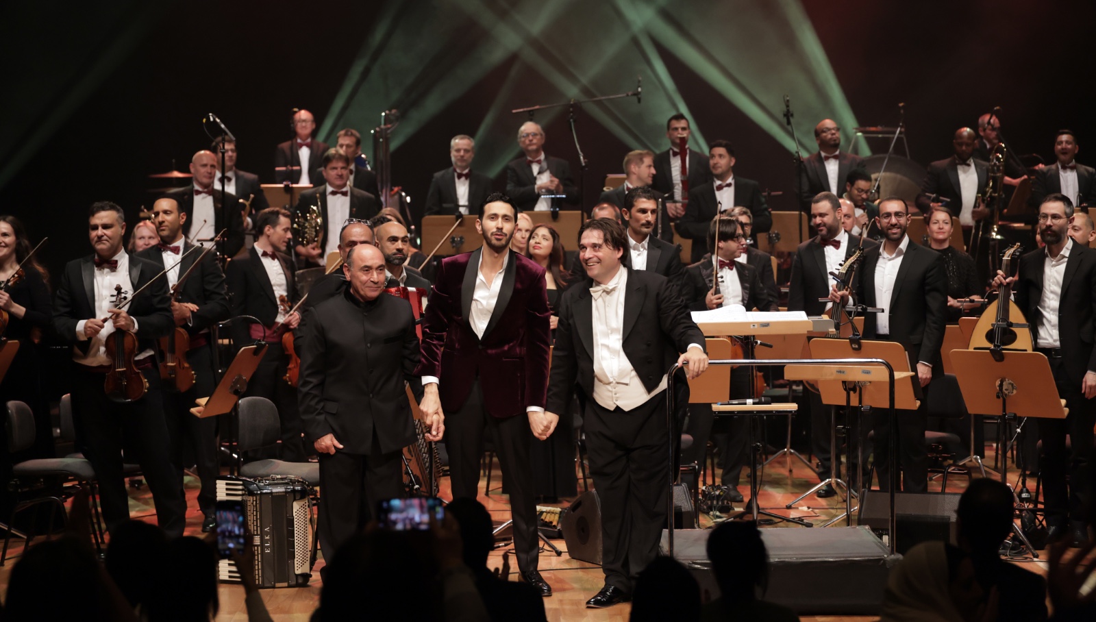 وافتتحت الأمسية بالعرض العالمي الأول لعمل *عمر الرحباني* الجديد: *كونشيرتو رقم ٢* للبيانو والأوركسترا ، الذي أسر الجمهور بحيويته وتنوّع ألوانه الأوركسترالية، مع دمج متقن لفرقة *التخت الشرقي* ضمن البناء الموسيقي، بما في ذلك حضور آلة الطبل بنبرتها العميقة والرنانة، ليقدّم العمل توليفة متوازنة بين الحسّ العربي واللغة السيمفونية الحديثة.