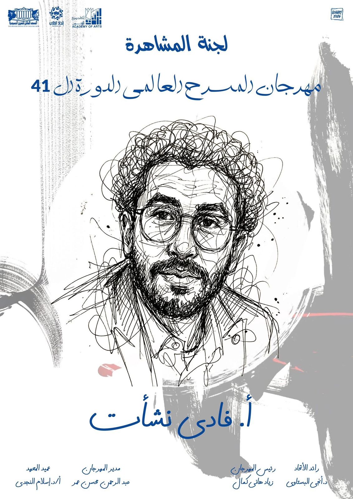 تبدأ يوم الجمعة 27 مارس الجاري فعاليات الدورة الحادية والأربعين من مهرجان المسرح العالمي بالمعهد العالي للفنون المسرحية تحت رعاية: معالي الدكتورة جيهان زكي – وزير الثقافة، والدكتورة نبيلة حسن – رئيس أكاديمية الفنون، والدكتور إسلام النجدي – عميد المعهد العالي للفنون المسرحية، وتحت إشراف رائد الاتحاد الدكتورة إنجي البستاوي.