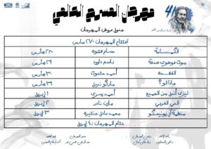 علنت إدارة مهرجان المسرح العالمي في دورته الحادية والأربعين عن انطلاقه غدا الجمعة الساعة السادسة مساء على خشبة مسرح المعهد العالي للفنون المسرحية بأكاديمية الفنون بالهرم بالتزامن مع يوم المسرح العالمي 27 مارس من كل عام.