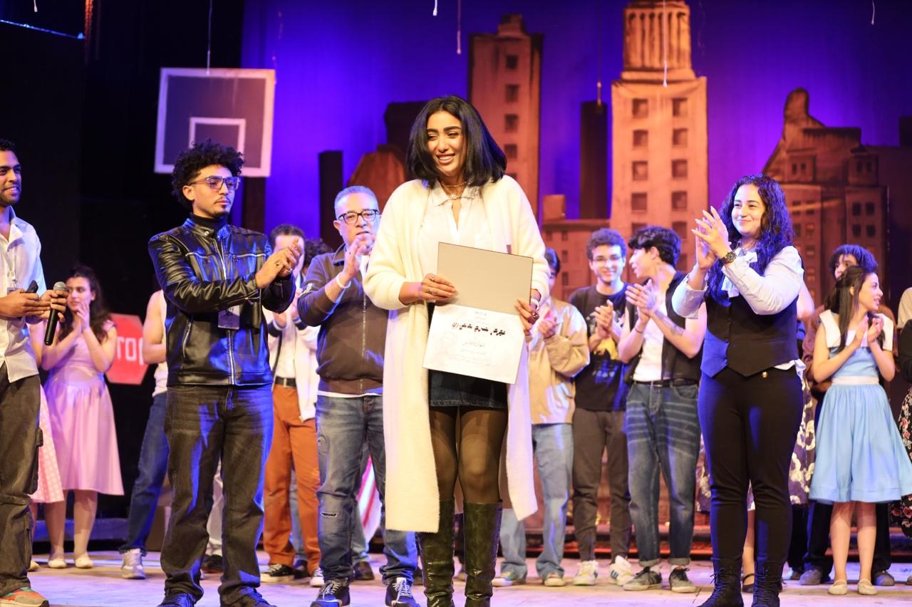 وبعد العرض قام الدكتورة انجي البستاوي والدكتور حاتم حافظ بتكريم مجموعة من نجوم المعهد في رمضان وهم: وفاء شوقي، نادر الجوهري، علاء هلال، رضوى جودة، ووالدة الفنان محمود حجاج شيكا نيابة عنه.