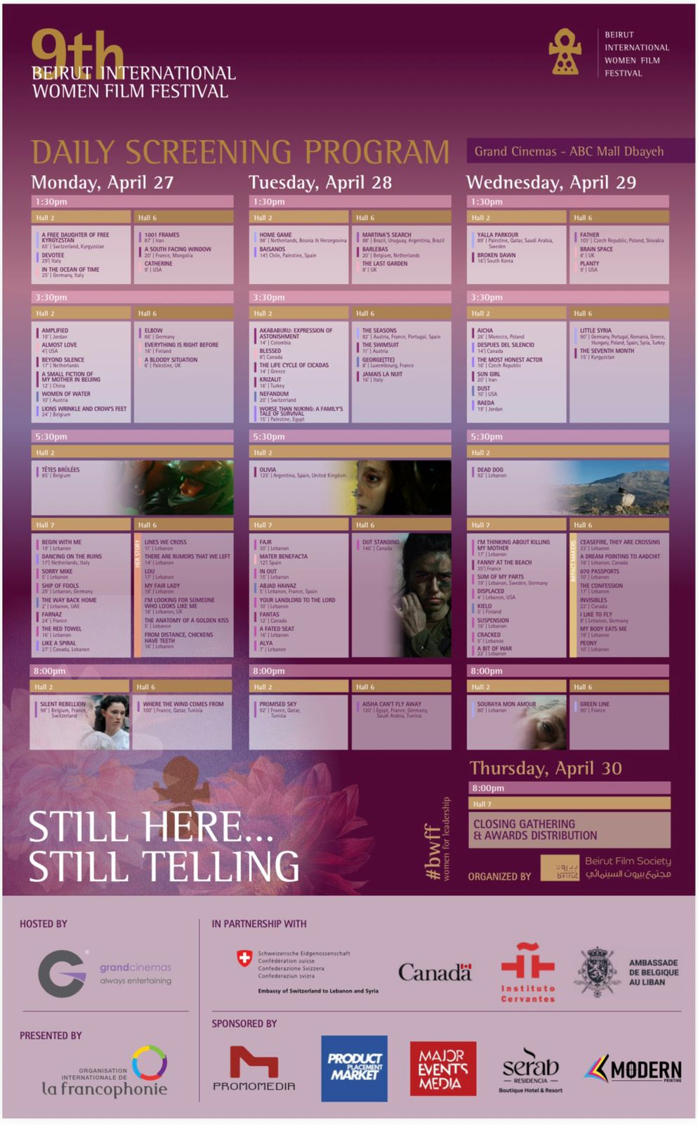 “ما زلنا هنا… وما زلنا نروي”، شعار غير معلن يختصر روح هذه الدورة، حيث تتحوّل الشاشة إلى مساحة للبوح، وتصبح السينما لغة مشتركة تتجاوز الأزمات، لتؤكد أن الإبداع لا ينكسر، وأن صوت المرأة سيبقى حاضرًا، مهما اشتدت الظروف.